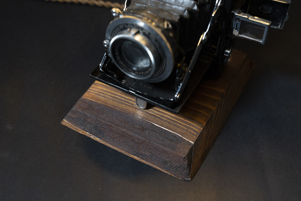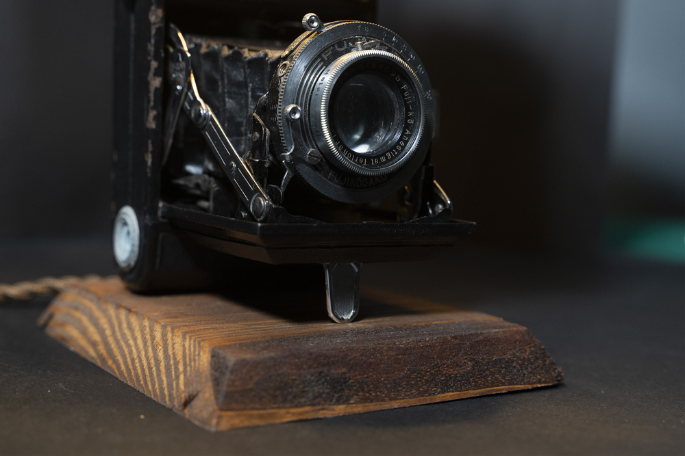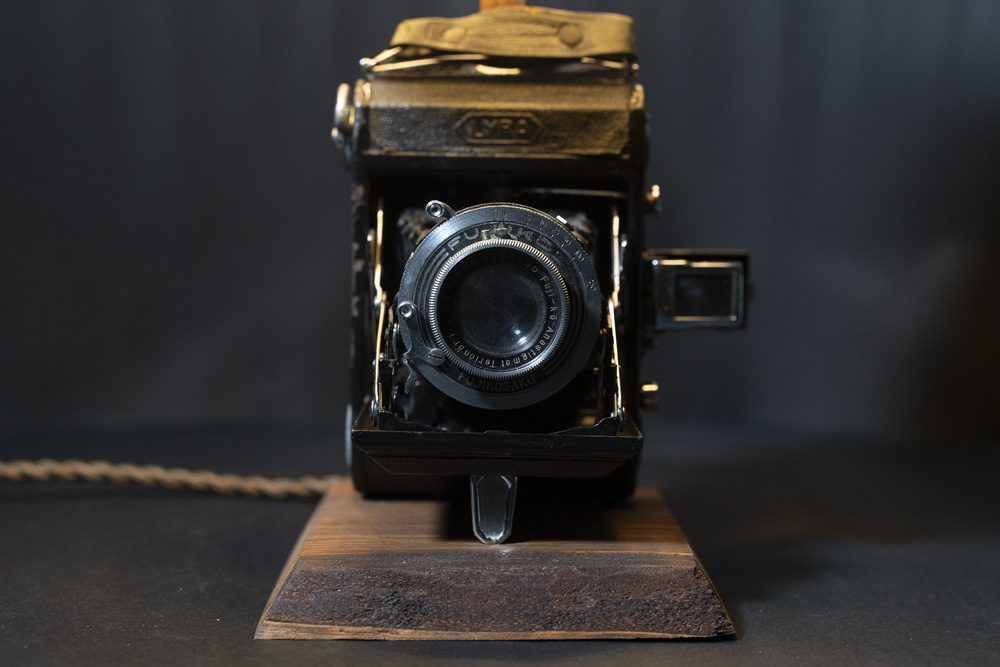 originale in tutte le sue parti, caratterizzata dalle sue dimensioni minute, da un soffietto ed impreziosita da un obiettivo originale, scattava in formato che non viene più prodotto.
